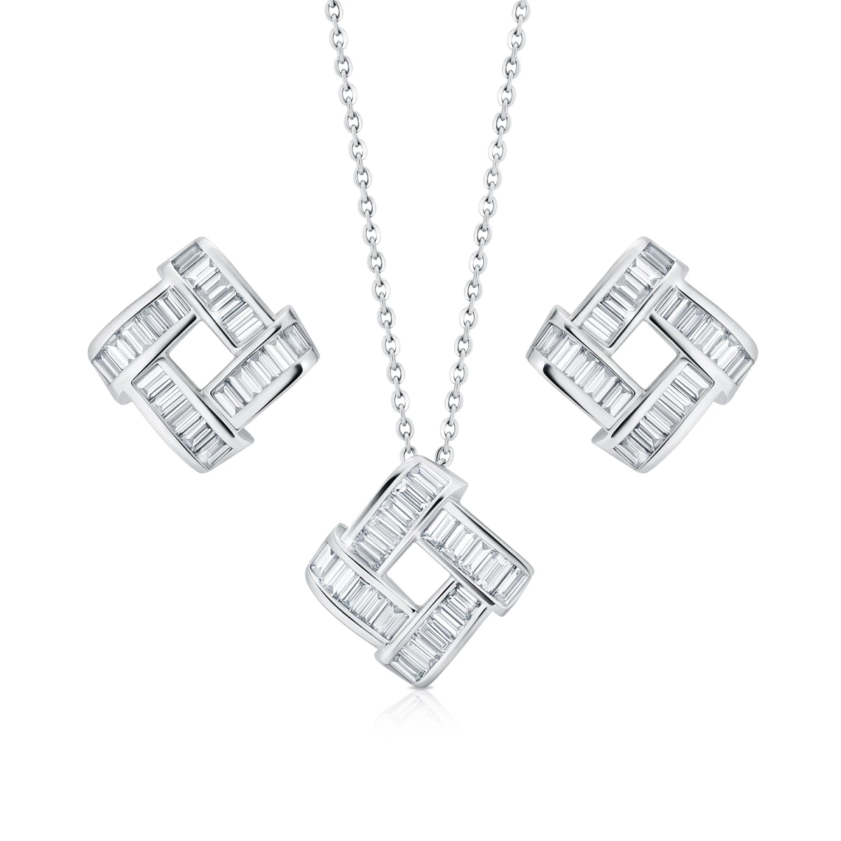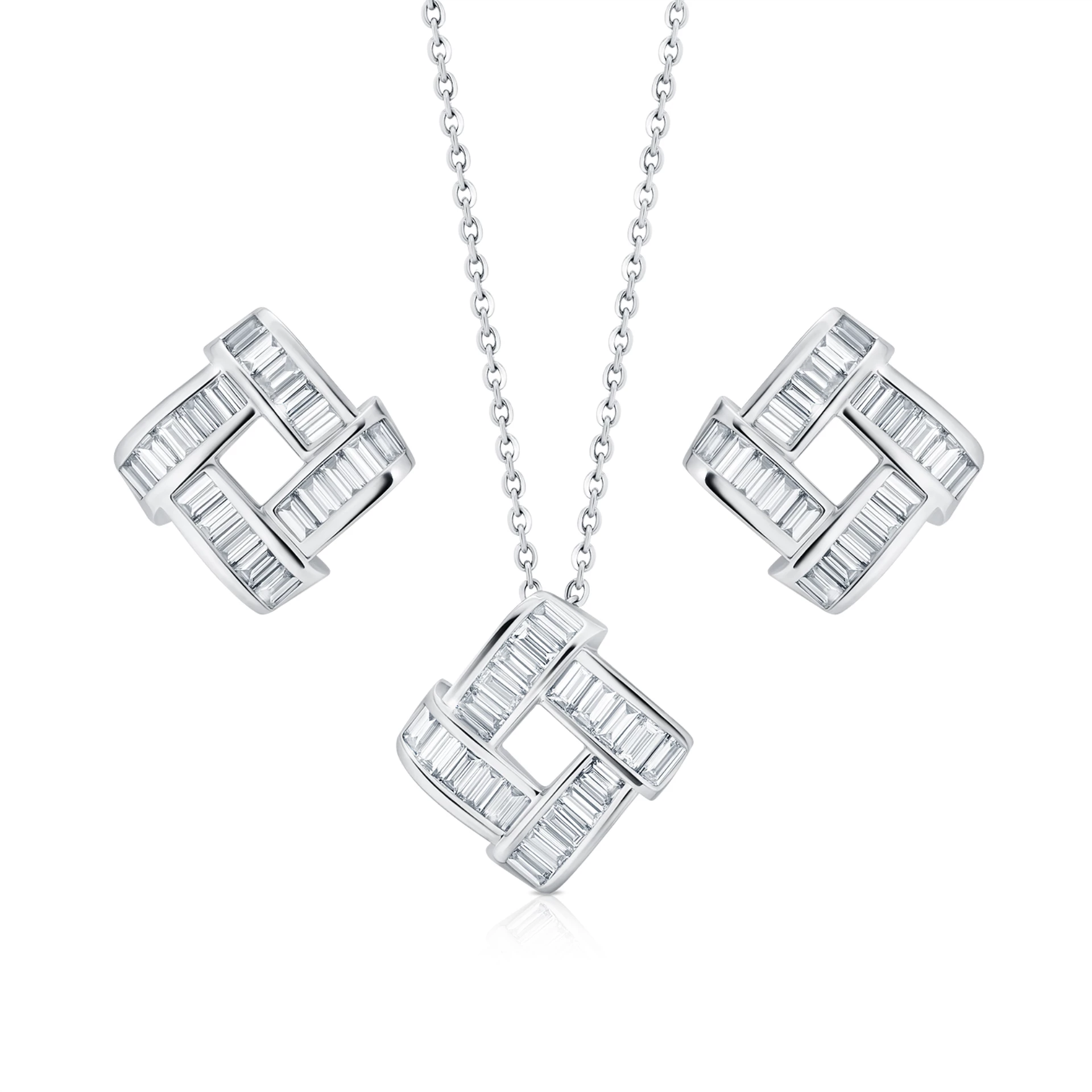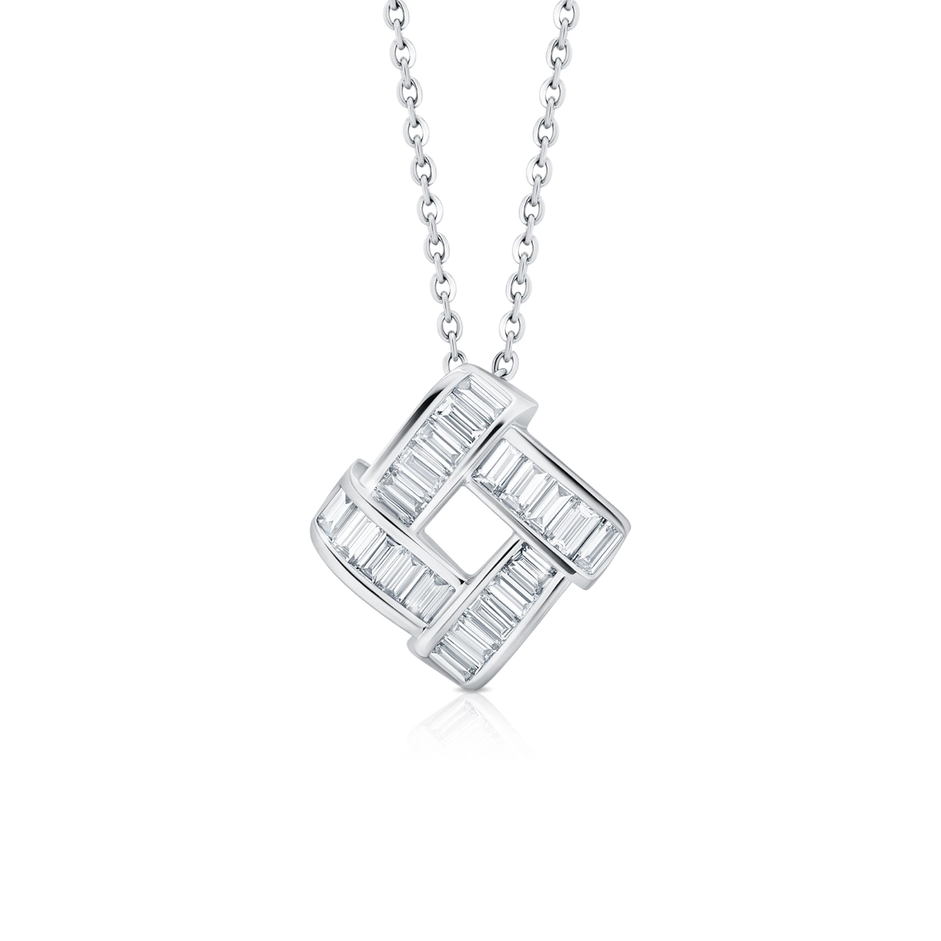 Naszyjnik diamentowy SCARLETT Baguettes odzwierciedla nowoczesną elegancję poprzez czyste linie i architektoniczną precyzję. Złożony z perfekcyjnie ułożonych diamentów w szlifie baguette, ukazuje subtelną grę światła i formy. Ponadczasowy element, stworzony do noszenia solo lub w zestawie z pasującymi kolczykami SCARLETT.